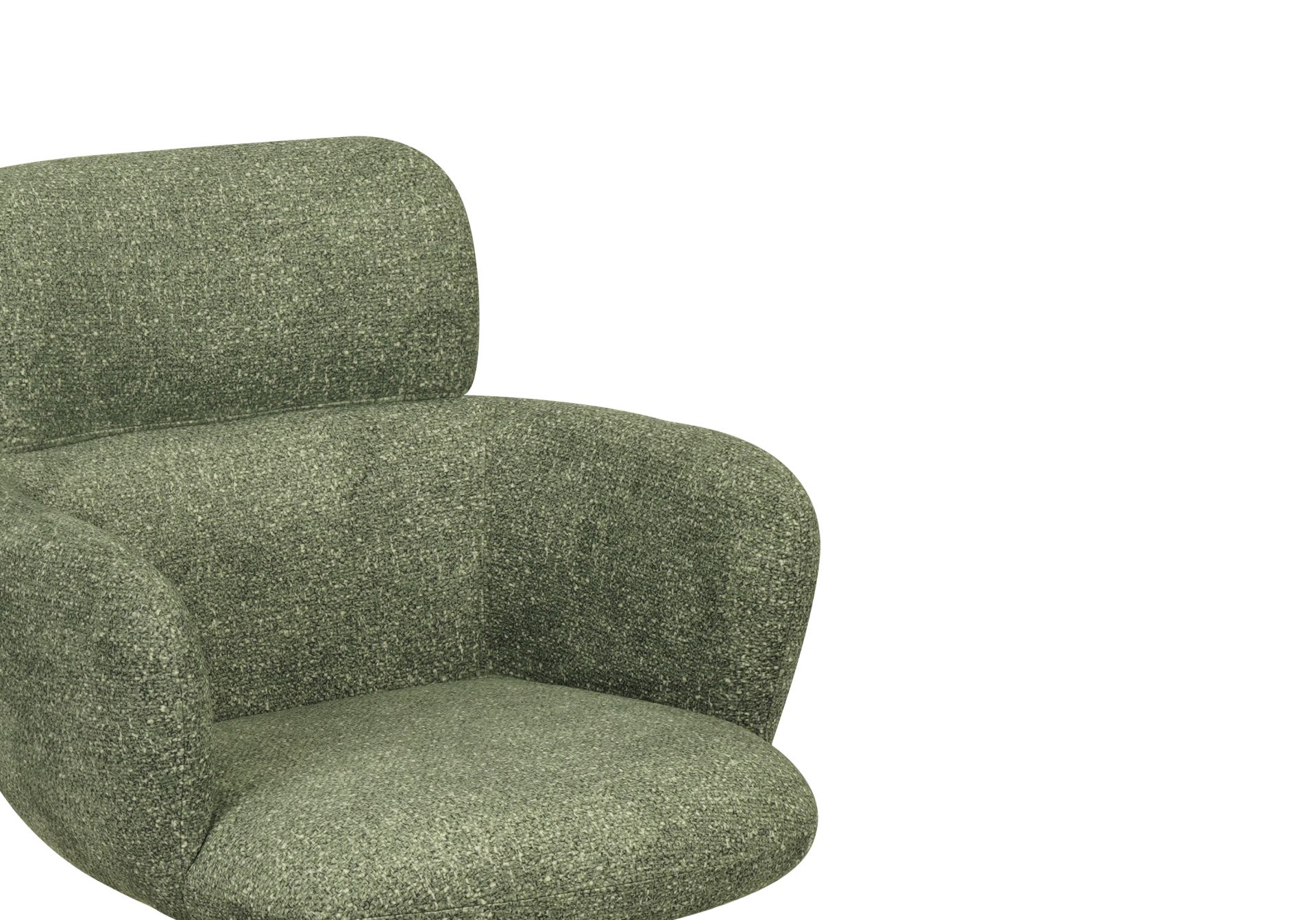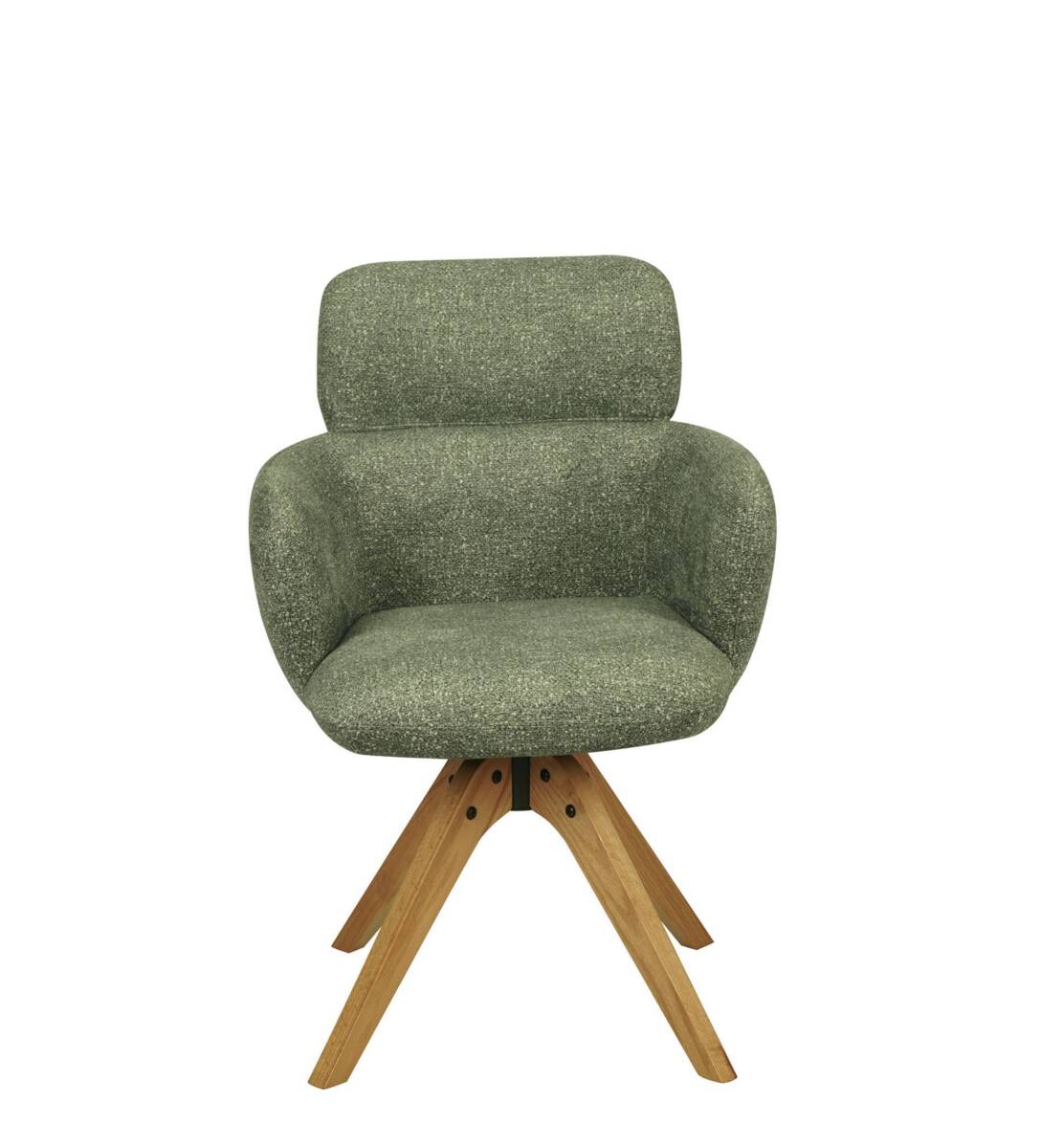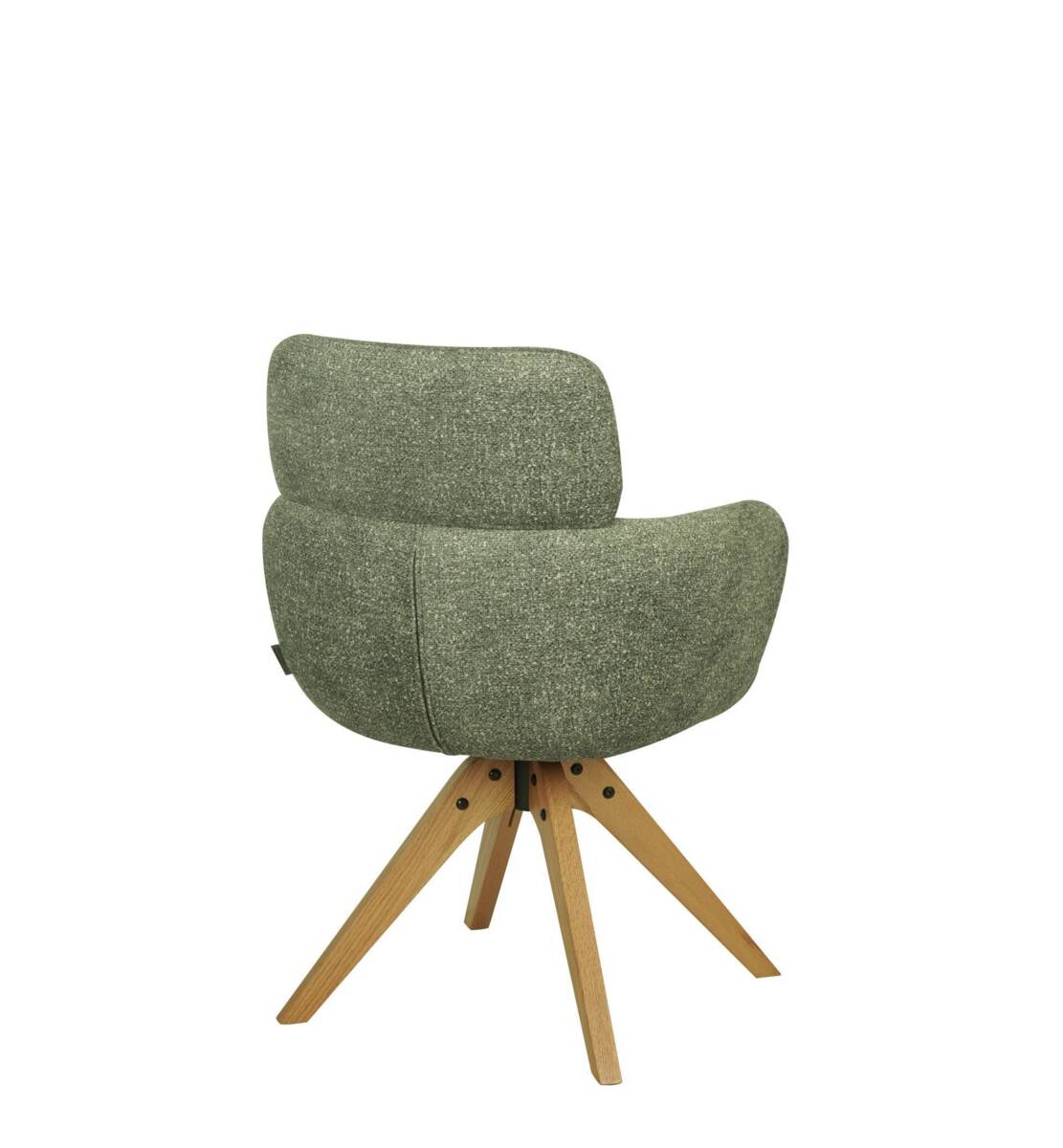 Entdecken Sie den Armlehnstuhl MANJA von Louming, der sich durch seinen modernen Stil und die drehbare Funktion auszeichnet. Der grüne Stoffbezug kombiniert mit einem Gestell aus Eichenholz verleiht Ihrem Raum einen frischen Look. Die Schaumstoffpolsterung in Sitz und Rückenlehne sorgt für außergewöhnlichen Komfort. Mit vier stabilen Holzfüßen bietet der Stuhl nicht nur Stil, sondern auch Stabilität.