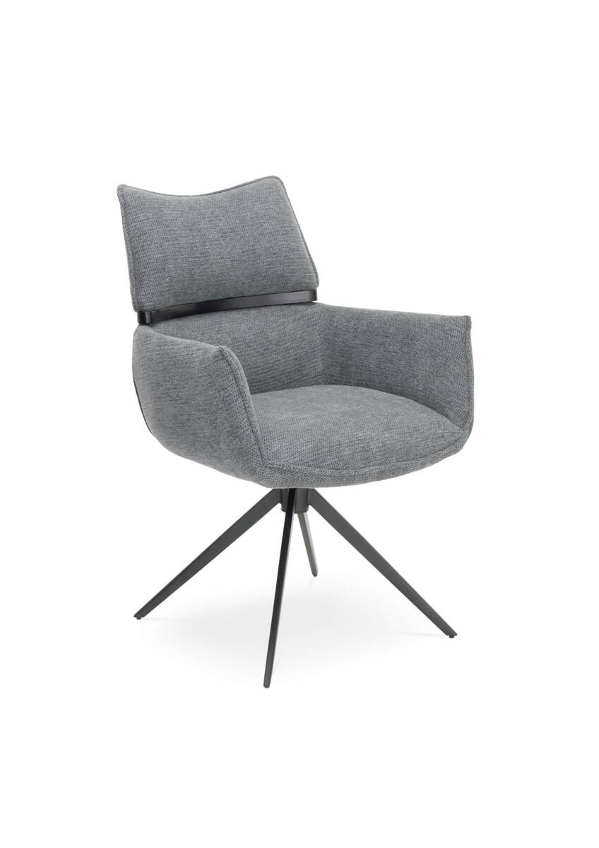Der drehbare Armlehnstuhl MARJA von Louming in stilvollem Grau kombiniert modernen Komfort mit zeitloser Eleganz.