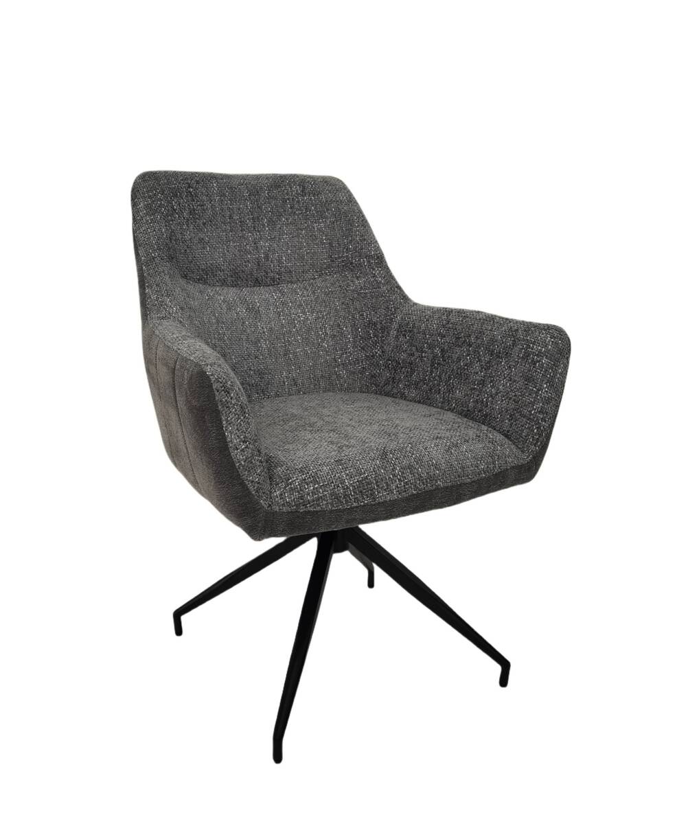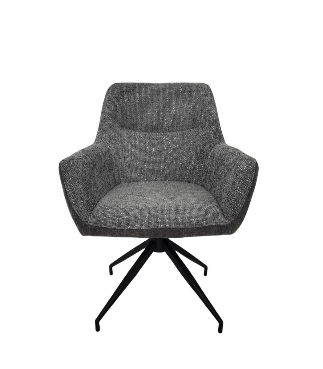 Der Armlehnstuhl MARYBEL von Louming präsentiert sich in einem modernen Stil, der durch sein elegantes Grau und das Stoffmaterial besticht. Die drehbare Funktion macht ihn besonders flexibel und vielseitig einsetzbar. Mit einem stabilen Gestell aus schwarzem Metall und vier soliden Füßen bietet er sicheren Halt. Sitz und Rückenlehne sind aus hochwertigem Schaumstoff gefertigt, was für einen hohen Komfort sorgt. Die Kombination aus Design und Funktionalität macht diesen Stuhl zu einem Highlight in jedem Raum.