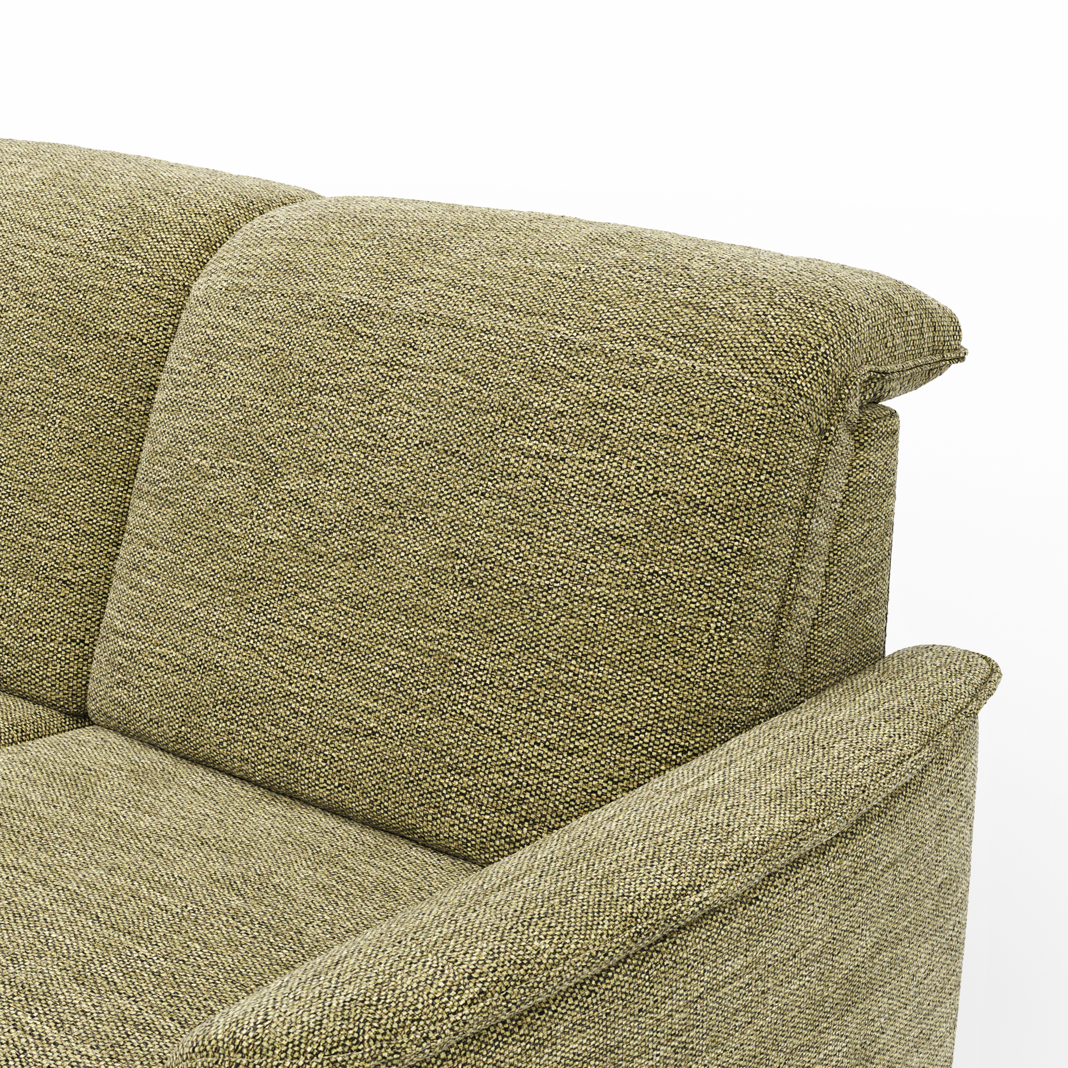 Die einladende Sitzhöhe von ca. 46 cm und das weiche Chenilleflachgewebe in einem natürlichen Moos-Ton laden zum Entspannen ein. Das verstellbare Kopfteil sorgt für zusätzlichen Komfort. Die schwarzen Füße verleihen dem Sofa Stabilität und sind dank ihrer Machart aus Metall äußerst robust. Die Form der vier Füße fügt sich nahtlos in das elegante Design ein.
