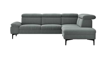 Ecksofa Felipa - Longchair links mit 2,5-Sitzer inkl. Armlehne verstellbar und Rückenlehne/Sitztiefe verstellbar (motorisch), Stoff, Grau