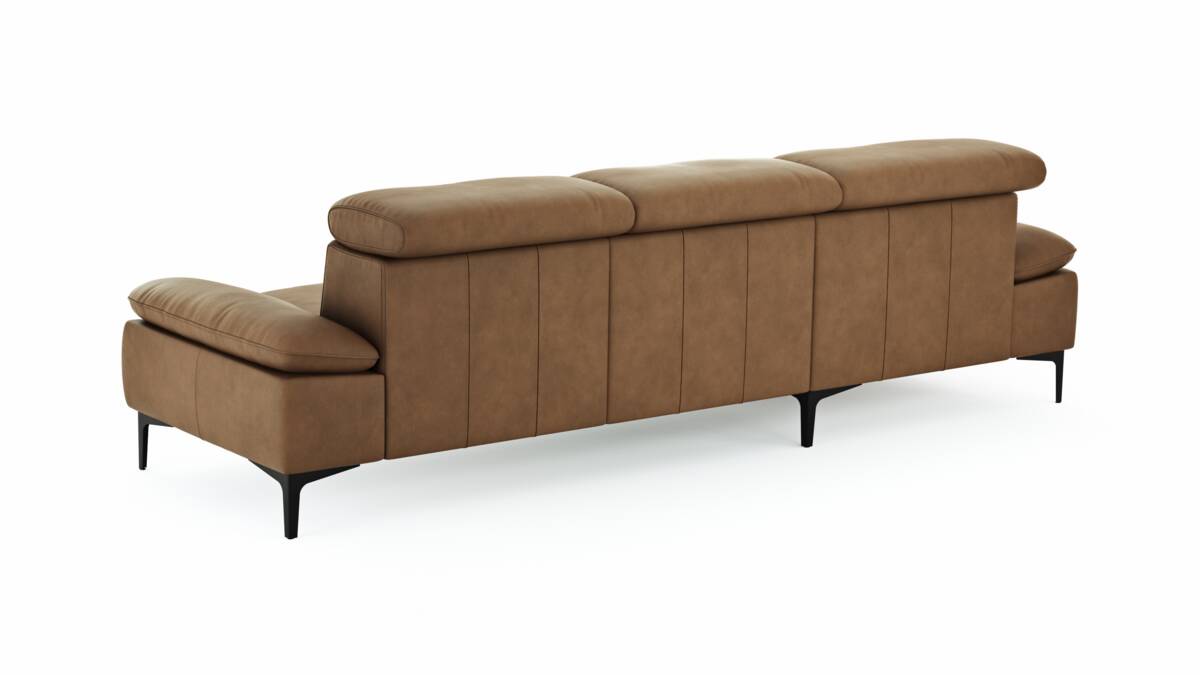 Ecksofa Felipa - Longchair links mit 2,5-Sitzer inkl. Kopfteil verstellbar, Leder, Cognac