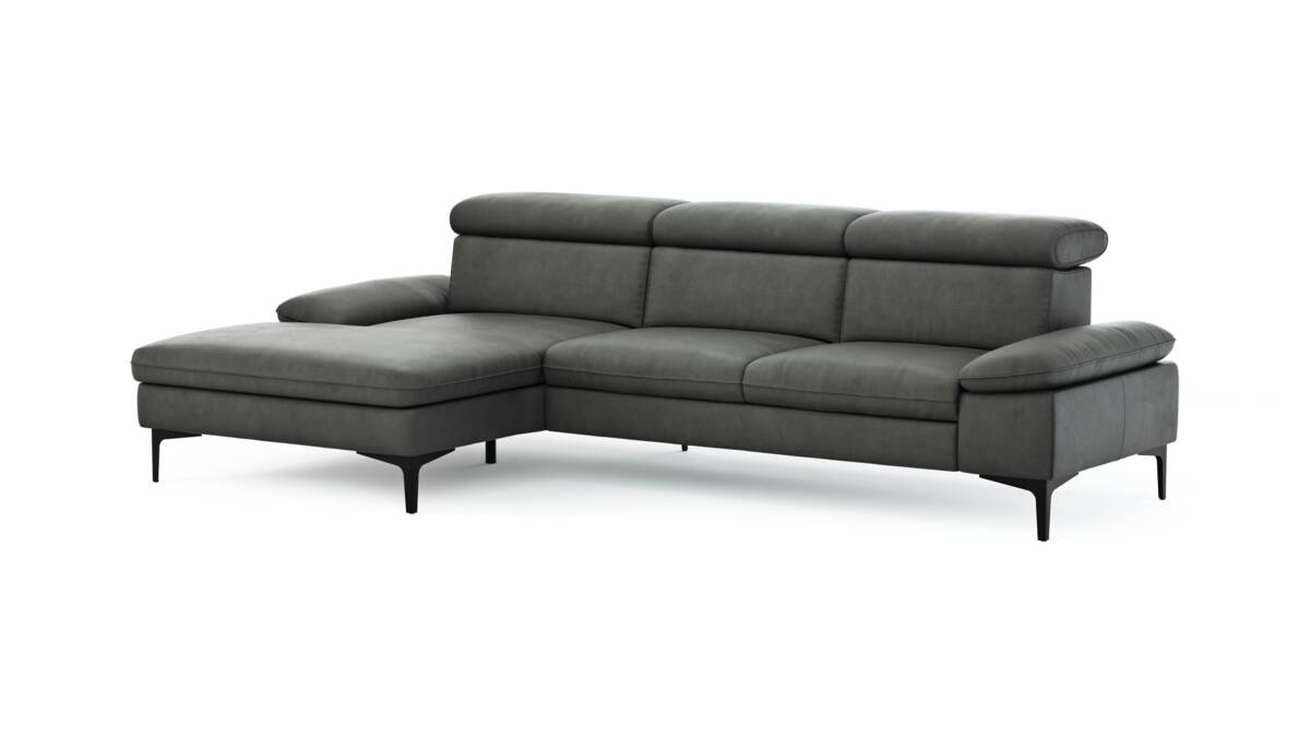 Ecksofa Felipa - Longchair links mit 2,5-Sitzer inkl. Kopfteil verstellbar, Leder, Grau