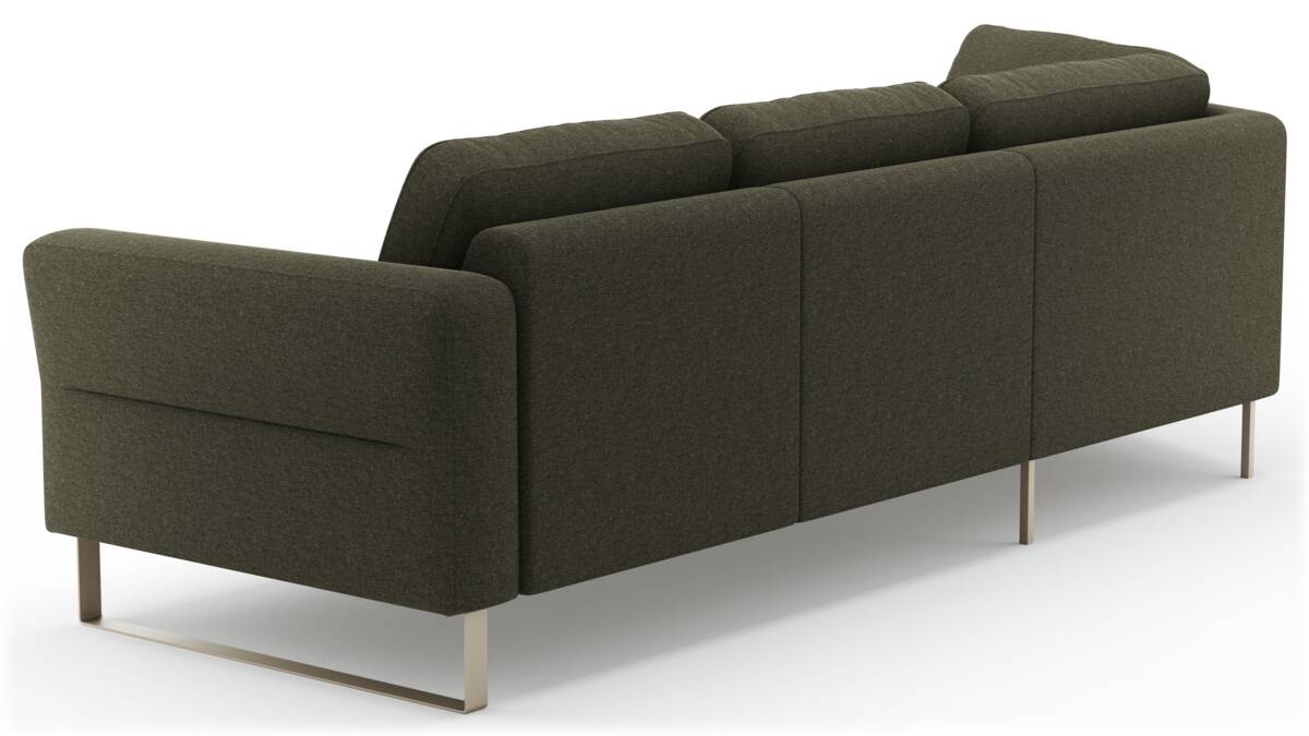 Komfort trifft klares Design: Das Ecksofa Leona - Ecke mit 2,5-Sitzer rechts, Stoff, Braungrün von Global Family vereint modernen Stil mit einem braungrünen Stoffbezug und Metallkufen in Beige. Die rechte Eckkonfiguration bietet großzügigen Sitzraum; die Sitzhöhe beträgt ca. 45 cm für bequemes Ein- und Aussteigen. Marke: Global Family; Stil: Modern; Farbe: Braungrün; Material: Stoff; Füße: Metall (Form: Kufe), Farbe Füße: Beige. Bei einer Beratung im lokalen Möbelhaus eröffnen sich für Sie viele weitere Konfigurationsmöglichkeiten, etwa andere Farben, Stoffe oder Leder.
