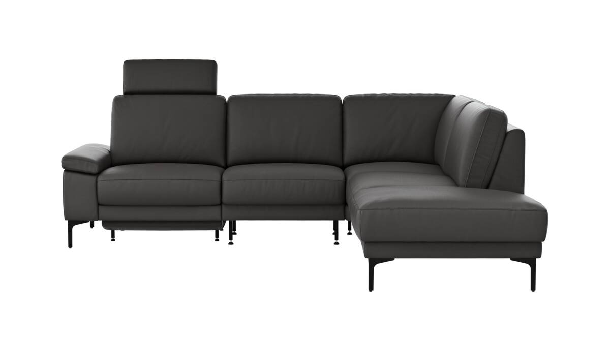 Das Ecksofa Matero von Global Family begeistert mit modernem Design und hochwertigem Leder in stilvollem Anthrazit. Die motorische Relaxfunktion und der Sitzvorzug sorgen für individuellen Komfort. Die ca. 45 cm Sitzhöhe bietet bequemen Halt, während die Winkelfüße aus schwarzem Metall für Stabilität und eine elegante Optik sorgen. Entdecken Sie im Möbelhaus weitere Konfigurationsmöglichkeiten in verschiedenen Farben, Stoffen und Ledervarianten.