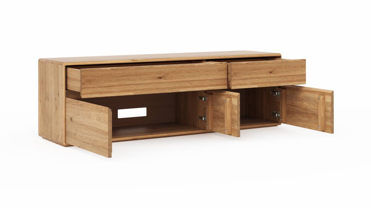 Die tiefen Schubladen bieten maximalen Stauraum und dein Entertainment-System inkl. TV und Soundbar ist bestens auf dem stabilen Möbelstück aufgehoben.