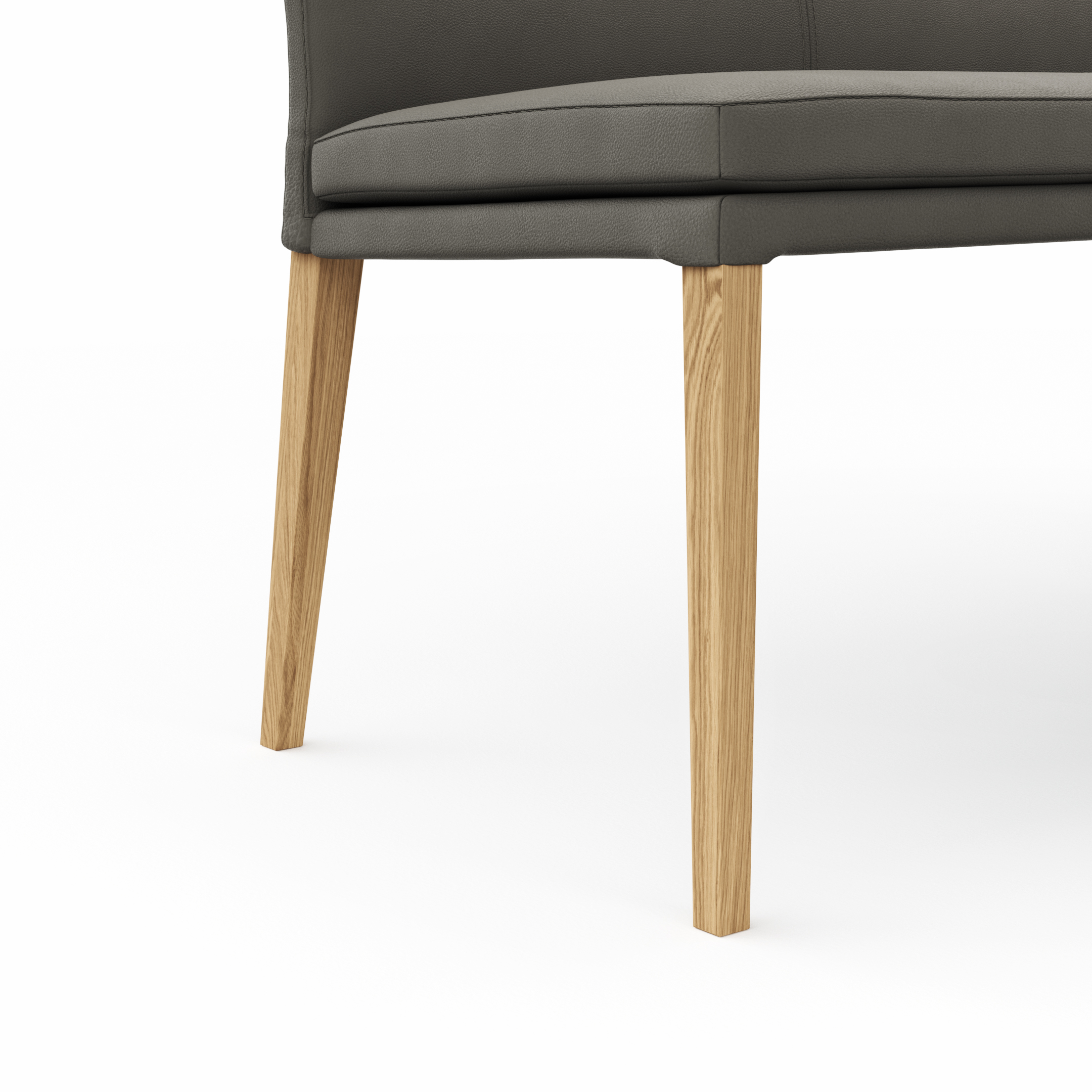 Mit einer Breite von ca. 155 cm bietet sie ausreichend Platz und fügt sich harmonisch in jedes moderne Wohnzimmer ein. Das hochwertige graubraune Leder verleiht der Bank nicht nur Eleganz, sondern auch Langlebigkeit. Die Sitz- und Rückenlehne aus Schaumstoff sorgen für optimalen Komfort. Die massiven Eichholzfüße unterstreichen die robuste Bauweise und sorgen für Stabilität.
