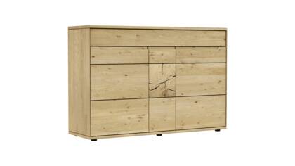 Die massive Wildeiche strahlt mit ihren warmen, erdigen Tönen eine Ruhe aus, die sich auf dich und dein Zuhause überträgt. Die Maserung des Holzes sowie die mittig angebrachten Hirnholzakzente der Front verwandeln jedes Möbelstück in ein Unikat. Verleihe deinem Sideboard mit Pflanzen und liebgewonnener Deko den letzten Schliff und die Wohlfühl-Atmosphäre ist perfekt.