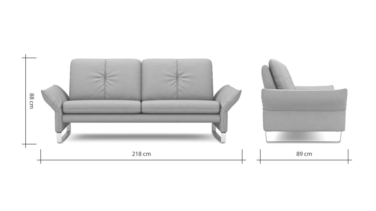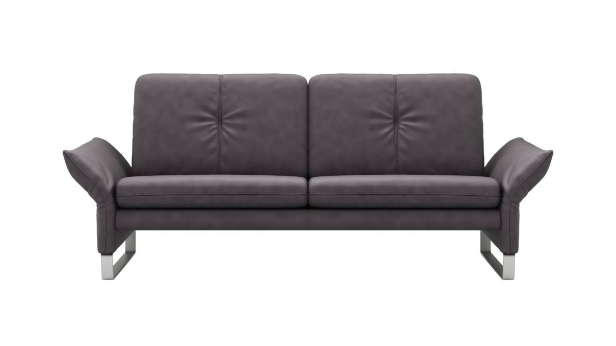 Mit einer Sitzhöhe von ca. 44 cm bietet dieses Sofa ein optimales Sitzgefühl. Die alufarbenen Füße in Kufenform, gefertigt aus robustem Metall, verleihen dem Möbelstück Stabilität und eine edle Optik. Besondere Akzente setzt die Doppelnahtführung, die nicht nur für eine hohe Langlebigkeit sorgt, sondern auch das Design unterstreicht.