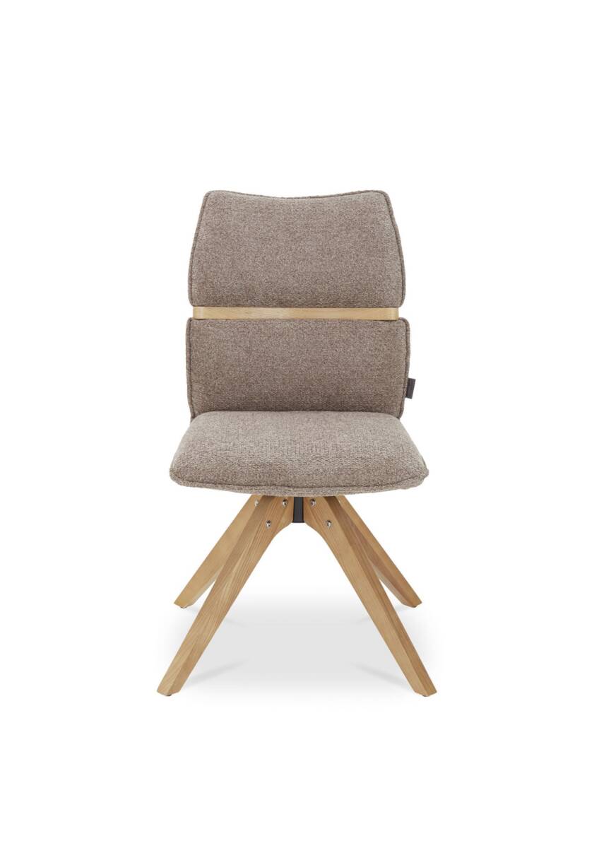 Sein elegantes, drehbares Design wird durch ein Holzgestell in natürlichen Tönen ergänzt. Die vier stabilen Holzfüße bieten zuverlässigen Halt, während die Schaumstoffpolsterung für optimalen Sitzkomfort sorgt. Der edle Stoffbezug verleiht dem Stuhl eine zeitlose Ästhetik, die in jedem Raum für einen stilvollen Akzent sorgt.