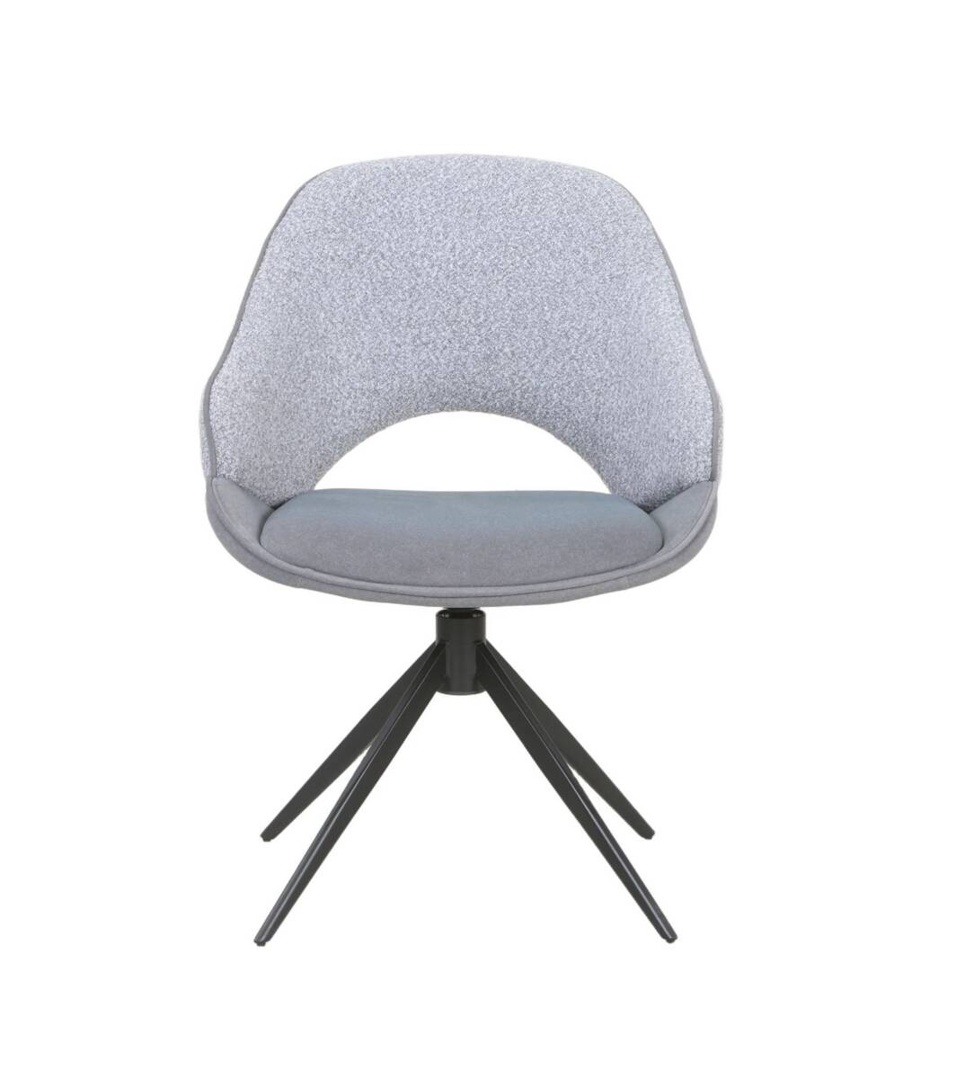Entdecken Sie den Stuhl MERIEM von Louming, der durch sein modernes Design in Grau beeindruckt. Der drehbare Stuhl ist mit weichem Schaumstoff in Sitz und Rückenlehne ausgestattet und bietet so höchsten Komfort. Die stabilen Beine aus schwarzem Metall verleihen dem Möbelstück eine elegante Note. Mit 4 Füßen sorgt das Gestell für sicheren Halt und passt sich harmonisch in jeden Raum ein. Der Stuhl besteht aus hochwertigem Stoff, der langlebig und pflegeleicht ist.