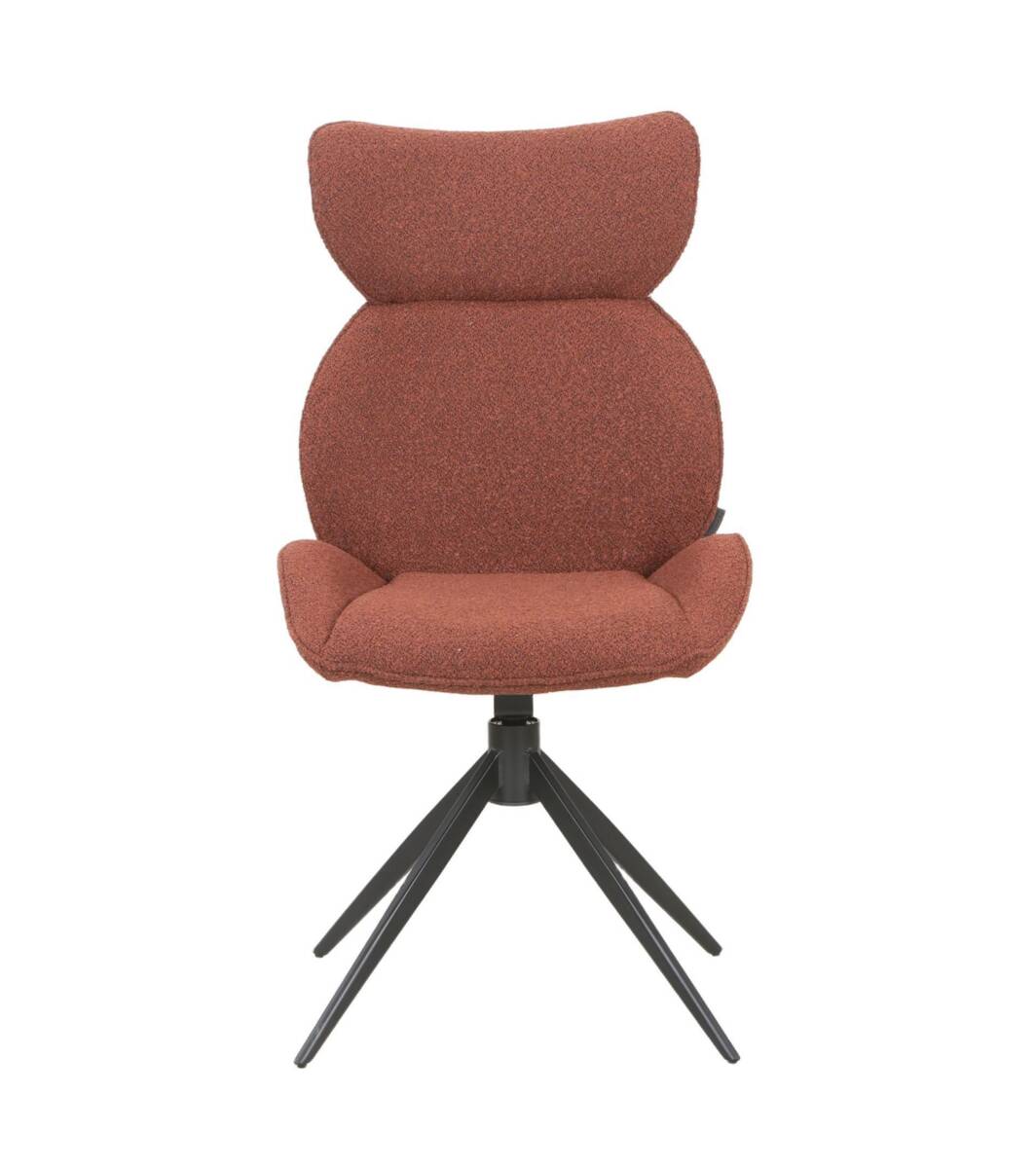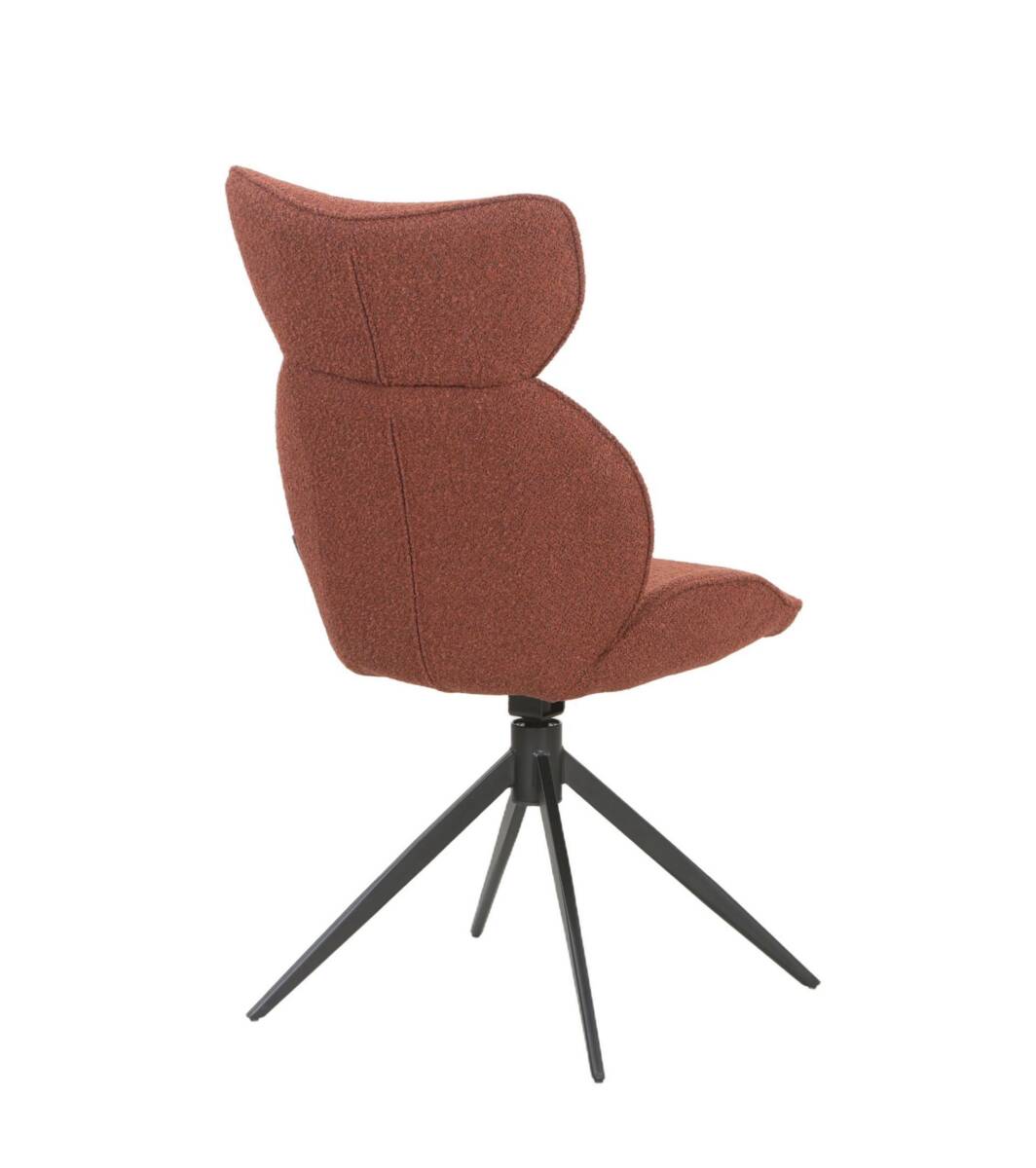 Der Stuhl MIRNA von Louming beeindruckt mit seinem modernen Design und der rostfarbenen Stoffausführung. Der Sitz und die Rückenlehne aus hochwertigem Schaumstoff sorgen für angenehmen Komfort. Das stabile Metallgestell mit 4 Füßen in Schwarz verleiht dem Stuhl eine elegante und zeitlose Optik. Der drehbare Mechanismus fügt Funktionalität hinzu, ideal für dynamische Wohnräume. Ob in Ihrem Wohnzimmer, Büro oder Essbereich, dieser Stuhl ist ein stilvolles Highlight.