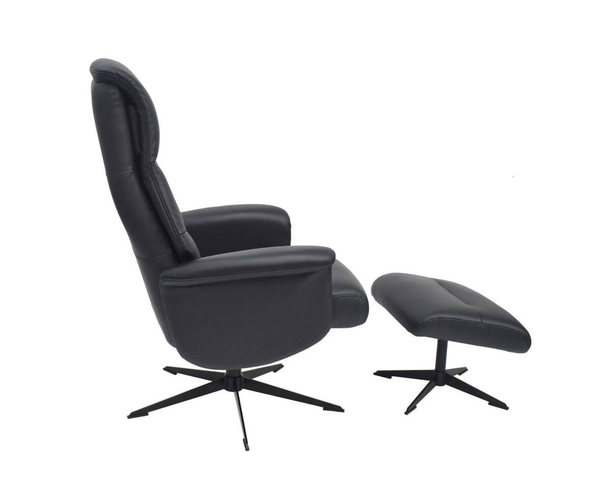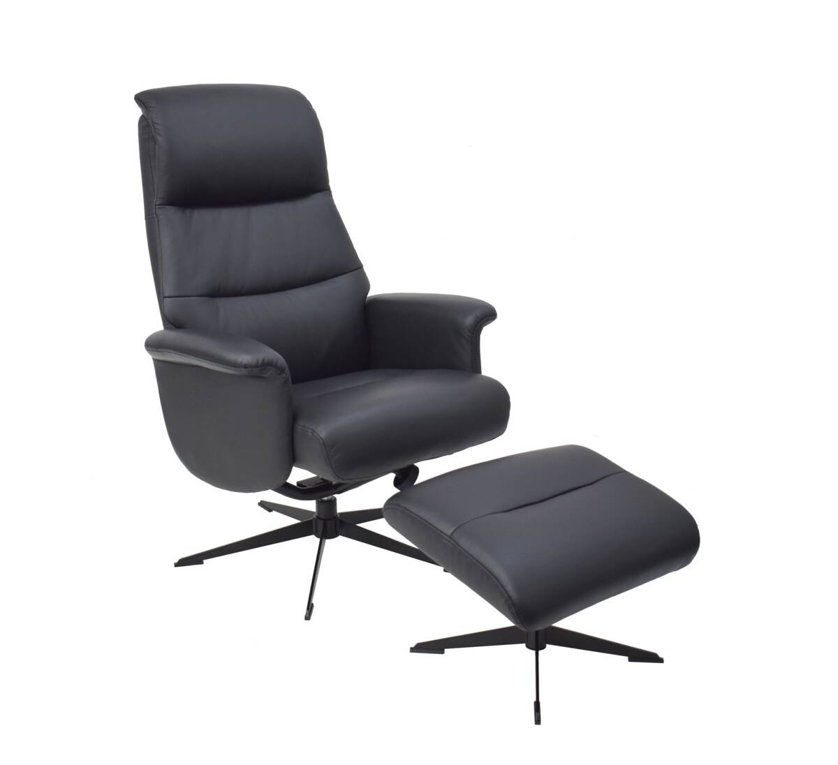 Entdecken Sie den TV-Sessel MENNIS mit Hocker von Louming, der durch sein modernes Design und die hochwertige Verarbeitung besticht. Der drehbare Sessel bietet eine entspannende Relaxfunktion und ein verstellbares Kopfteil, ideal für ultimativen Komfort. Mit seiner Sitzhöhe und sternförmigen Metallgestell in Schwarz fügt sich der Sessel nahtlos in Ihre Wohnlandschaft ein. Das elegante schwarze Leder unterstreicht die zeitlose Ästhetik.